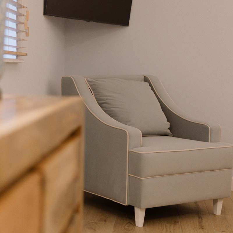 Przytulny kącik wypoczynkowy z elementami natury zaprasza do relaksu z książką. Idealny na romantyczny pobyt lub chwile samotnej refleksji dla tych, którzy cenią sztukę i spokój. Odkryj magię tego miejsca.